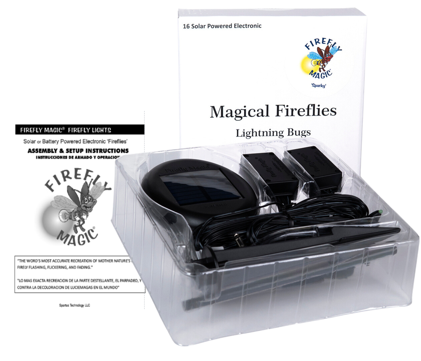 A patented method is used to control the LEDs independently to give the very realistic appearance of firefly activity. The Water-Resistant Solar Panel turns ON automatically at dusk and OFF at dawn (with the switch being in the Auto Position). The solar rechargeable batteries soak up the sun’s rays getting them ready for another enchanted night of Firefly Magic.